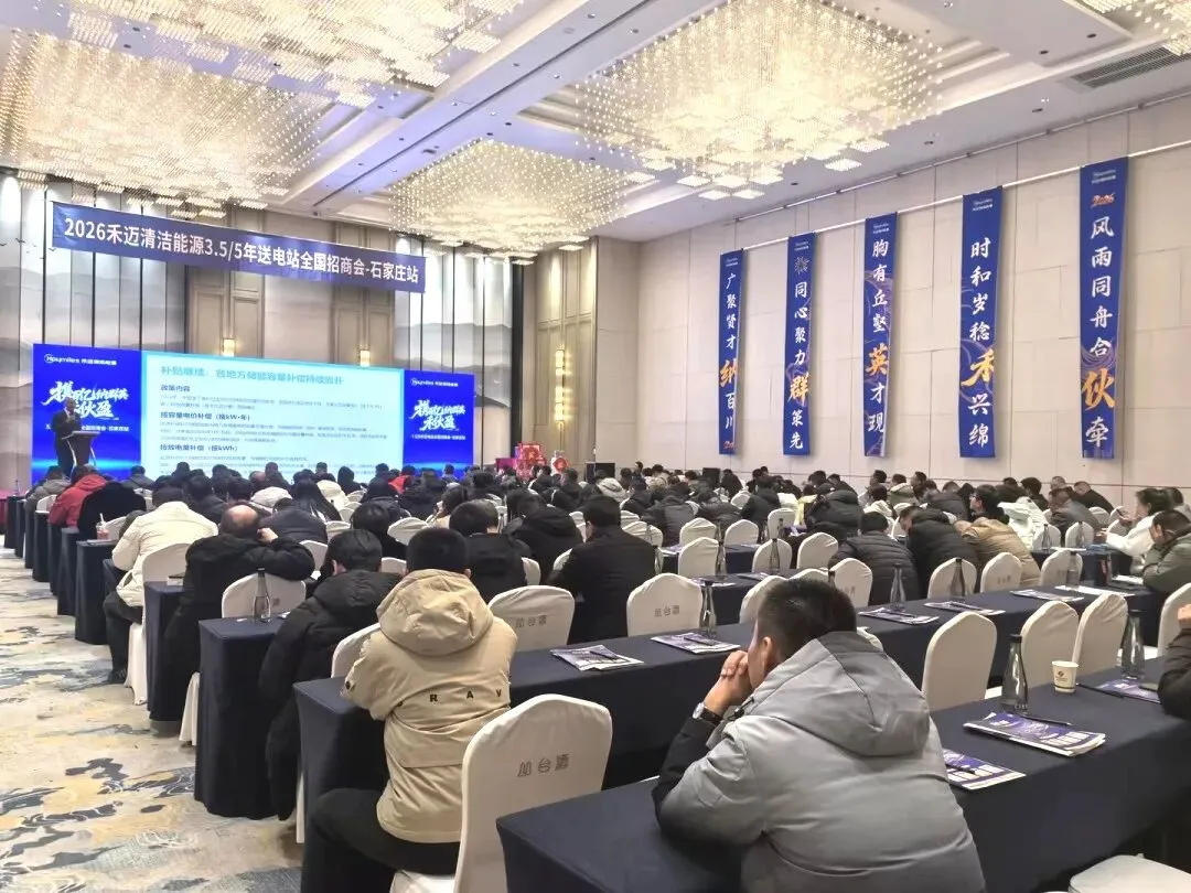 2026年1月20日,禾迈清洁能源「禾伙盈」石家庄招商会在众诚假日酒店圆满收官,仍有不少本地制造企业围着工作人员追问 —— 这场以“携百亿 · 纳群英 · 禾伙盈” 为主题的招商会,对准华北企业“现金流紧、冬季用电愁、碳压力大”的实际诉求,吸引京津冀200余家企业、渠道商到场,让“轻投入拿绿电资产”的模式落地华北市场。