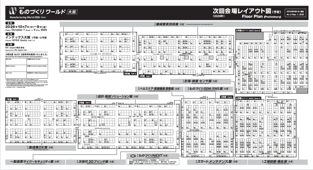 第一届Manufacturing World展会举办于1997年,已经有28年的历史。展会包含了10大主题,涵盖工业大类全链路,2025年东京展参展的有来自全日本17个地区和团体的1,975家参展商,已经预约的观众人数达到55749人。
