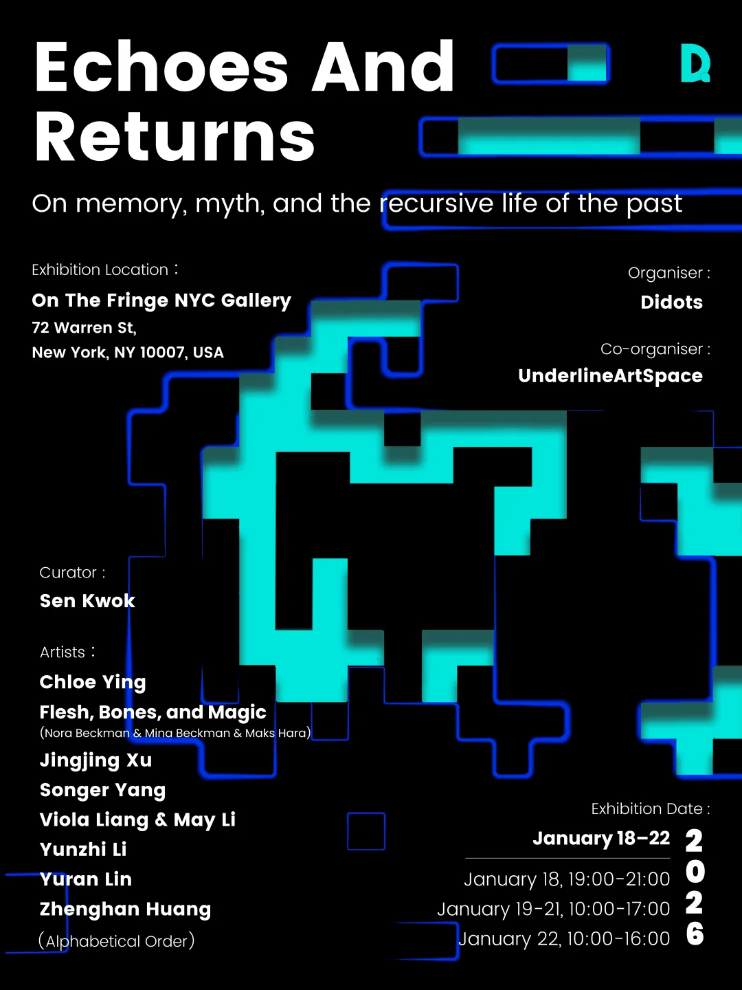 ____Underline Art Space下划线艺术空间荣幸宣布于2026年1月18日推出群展《响与回 (Echoes and Returns)》。此次展览由Didots荣誉出品,由仰成担任策展人。展览围绕记忆、神话以及过去的递归生命,呈现了艺术家们跨媒介的实践,包括绘画、摄影、影像、装置与行为艺术作品。