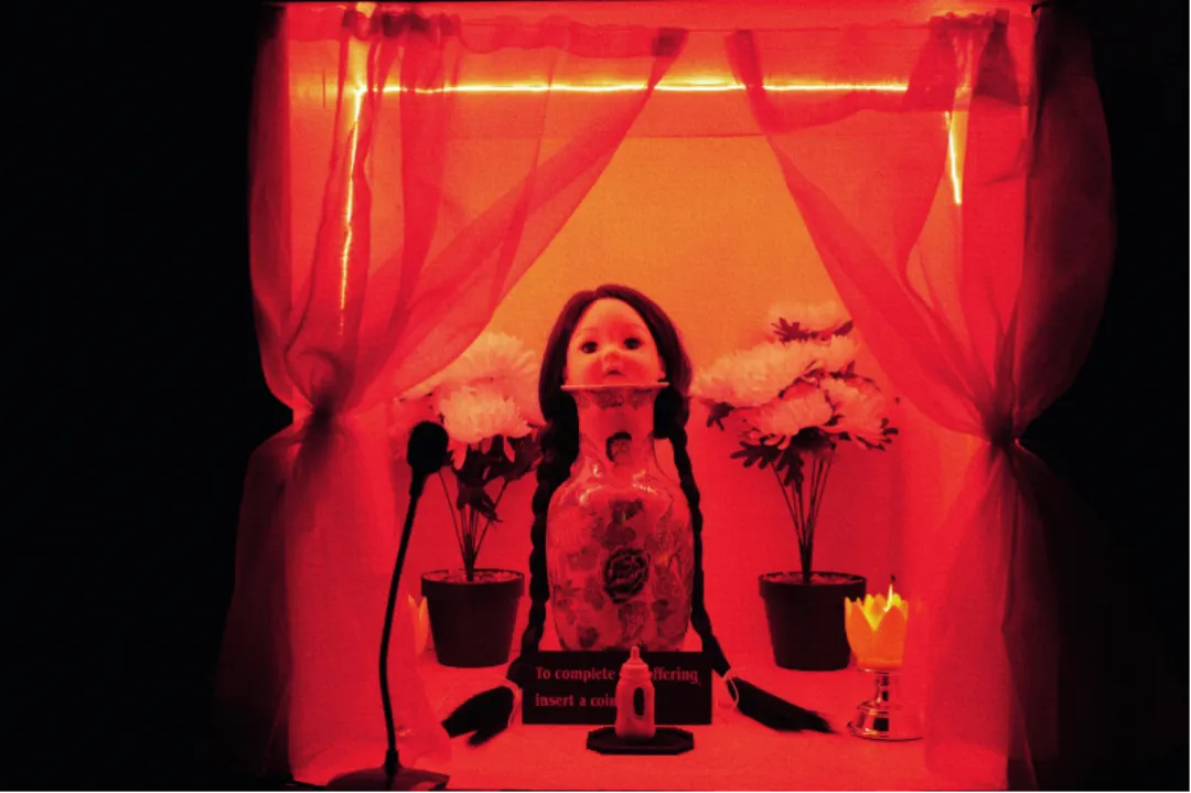 科技与灵性的边界在 Viola Liang & May Li 的作品Blessed Market 中变得模糊。A.MEI,这个源自民俗、由人工智能驱动的角色,在艺术空间内开启了一场关于身份与信仰的新协商。当仪式遇上算法,亲密感与精神性在技术具身化的过程中被重新定义。