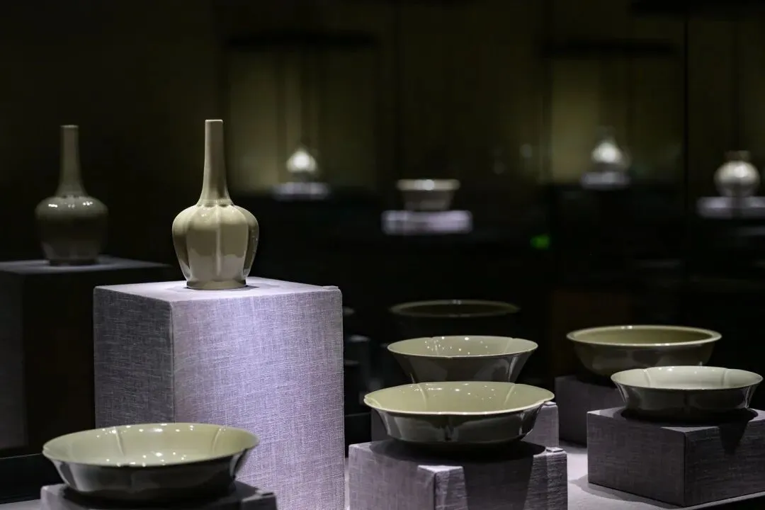 展览通过“秘色重光”“青鸟传情”“多彩幻境”三大板块,系统梳理了从唐代法门寺秘色瓷的精准复原,到经典纹样的现代转译,再到融合东西方美学的青瓷加彩创新这一完整艺术脉络。