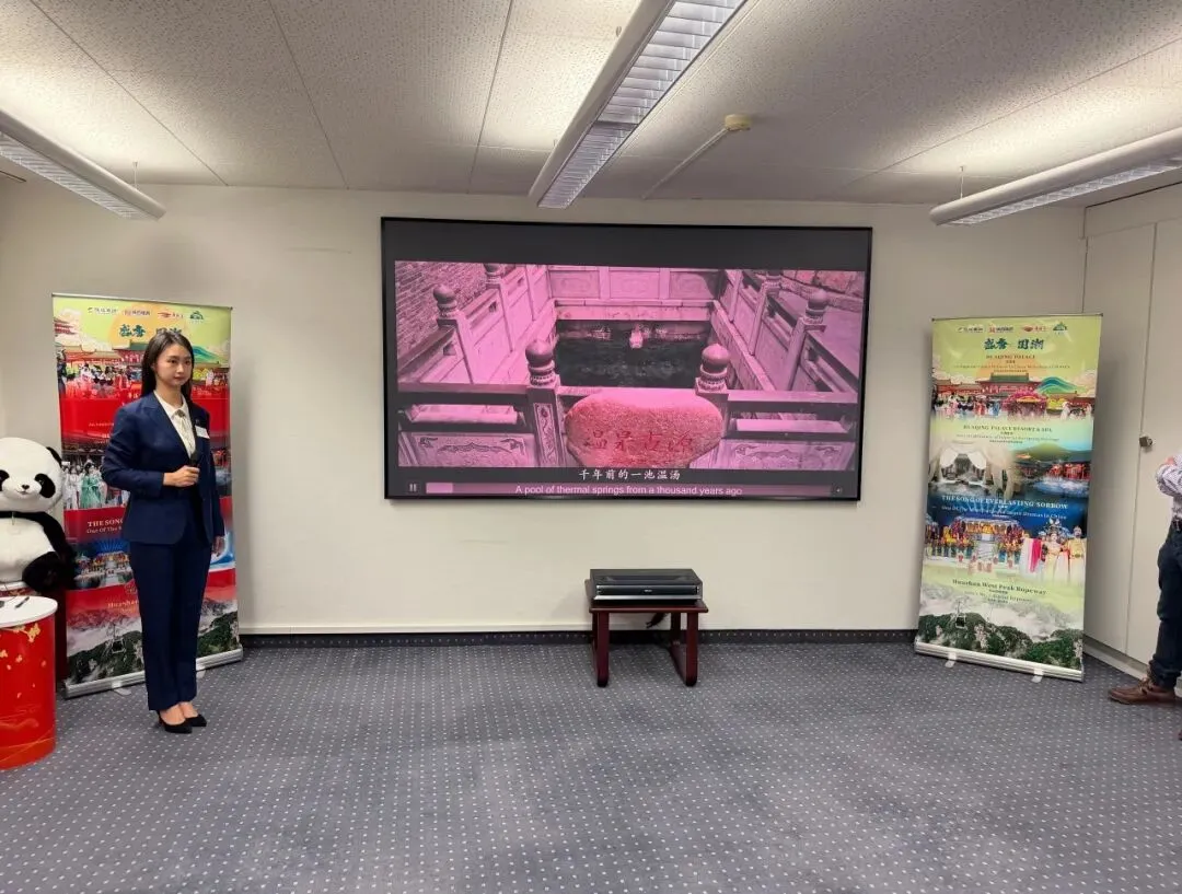 本次推介会以“推介+演艺+展示”的形式,通过精彩的唐宫乐舞、吸睛的文化宣传片以及生动详细的英文介绍,将华清宫深厚的历史底蕴与独特的文化魅力具象展现,中国驻瑞士苏黎世旅游办事处主任刘海生也亲临推介会现场。