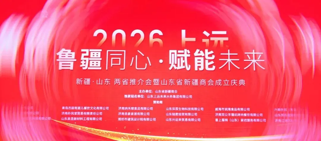1月19日,一场以“鲁疆同心,赋能未来”为主题的新疆·山东两地招商推介会暨山东省新疆商会成立庆典盛大启幕。本次盛会以战略共商为基、政策解读为脉、项目推介为核、产业对接为要、资源展示为翼,构建起鲁疆两地经济协同发展的立体化平台,既是山东省新疆商会扬帆起航的新起点,更谱写了鲁疆合作共赢的新篇章。上远作为本次活动的独家冠名单位,其董事长牛超先生围绕“携手上远,共赢未来”这一主题,进行了精彩的专题分享。