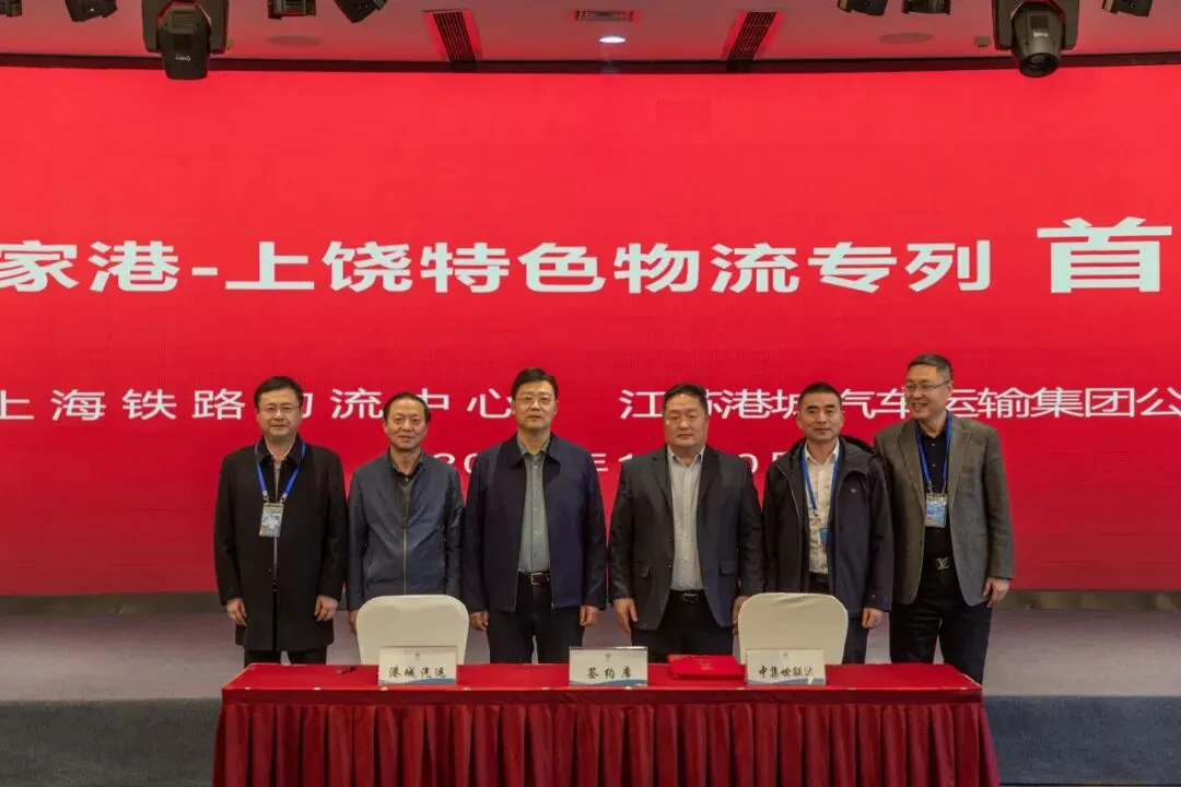 “张家港-上饶”特色物流专列首发仪式隆重举行,定制化班列服务再添新线路,为重点产业 “点对点” 运输提供高效选择。中集世联达与江苏港城汽运集团现场签约,标志着两地物流合作迈入新阶段。