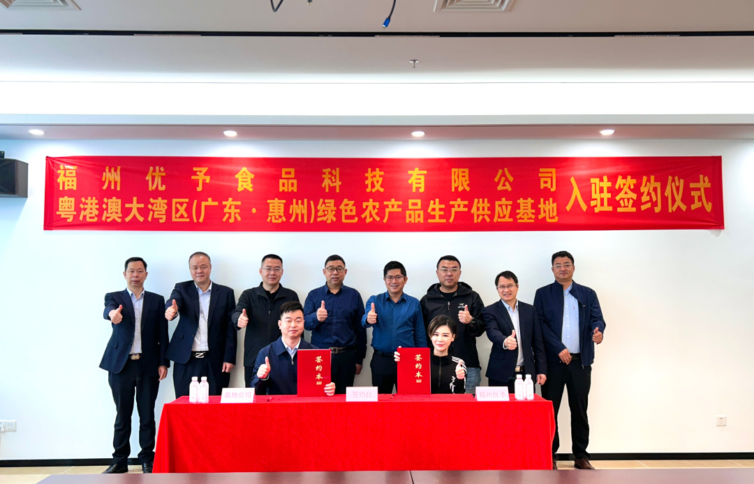 4月7日,福州优予科技有限公司与基地运营公司签订合作协议,即日起正式入驻粤港澳大湾区(广东·惠州)绿色农产品生产供应基地!