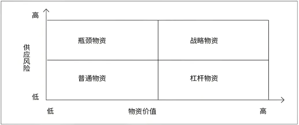 模型科普:卡拉杰克矩阵由彼得·卡拉杰克提出,是采购战略的奠基性模型。它摒弃了一刀切的思维,通过 “供应风险/复杂度”(纵轴)和 “支出重要性/价值影响”(横轴)两个维度,将品类划分为四个象限。