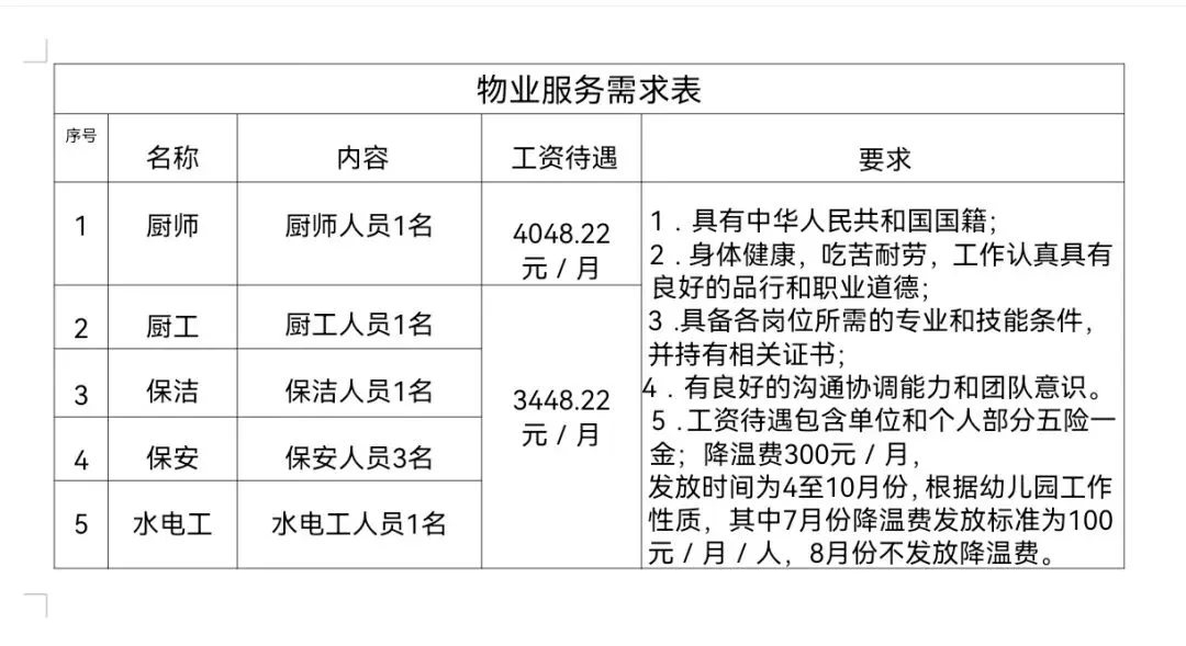根据幼儿园物业服务实际工作需求拟定服务范围具体如下: