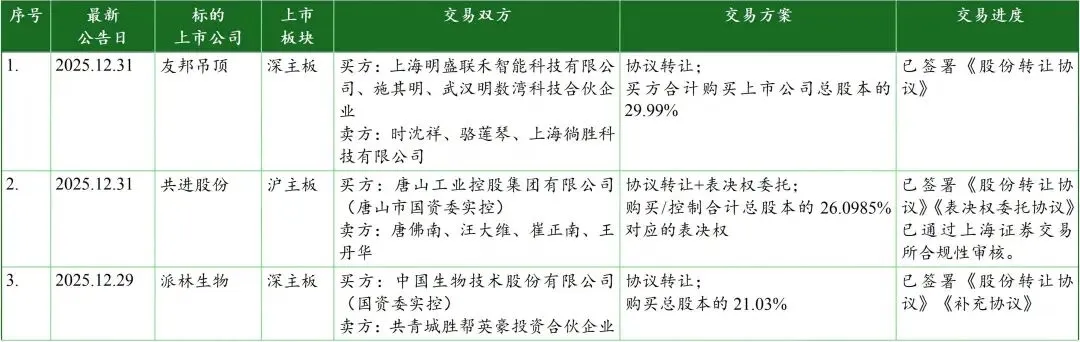 一、上市公司控制权变更交易资讯