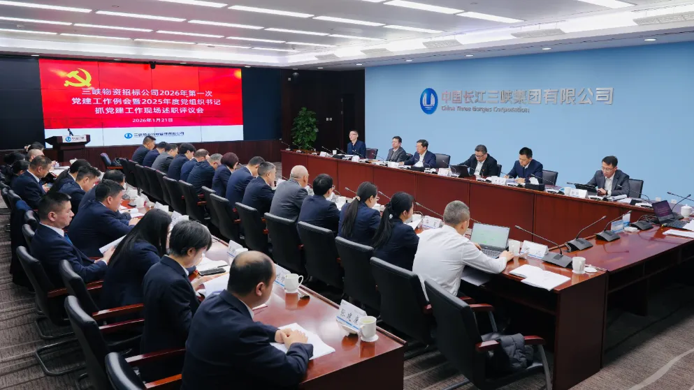 1月21日,三峡物资招标公司党委召开2026年第1次党建工作例会暨2025年度党组织书记抓基层党建工作述职评议会,总结回顾公司2025年党建工作,谋划2026年党建思路,压实党组织书记责任,推动基层党建工作提质增效。公司党委书记、董事长胡岱松主持会议并讲话,公司党委委员、基层党组织书记、各部门(单位)负责人和党员群众代表参加会议。