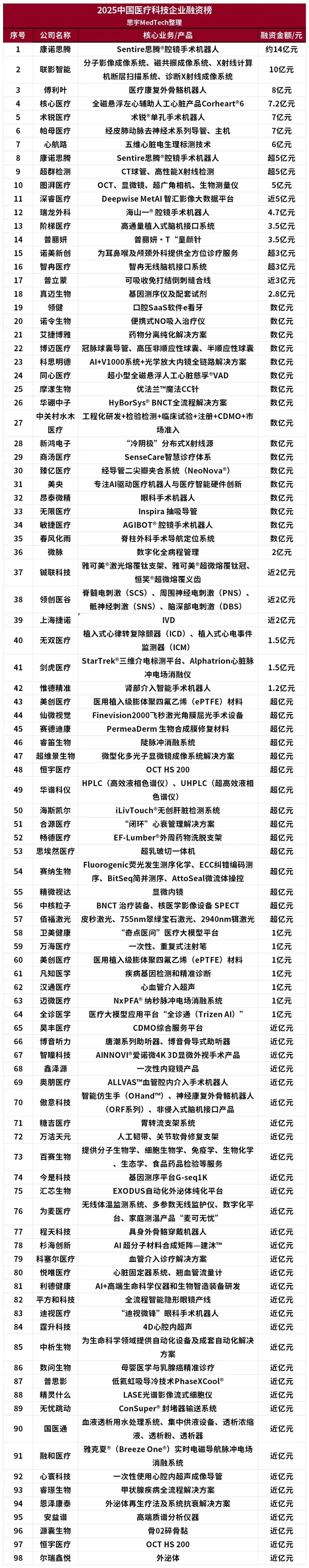 以下是思宇MedTech基于公开信息整理的2025年中国医疗器械企业融资榜单,供业内人士参考。