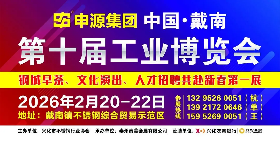 十年磨一剑,今朝启新程。2026中国·戴南第十届工业博览会的大幕即将拉开,这既是一场致敬过往的行业盛典,更是一次奔赴未来的合作之约。山东省不锈钢行业协会诚邀山东乃至全国不锈钢行业同仁,相约戴南、共襄盛举,在技术交流中碰撞智慧,在商贸合作中凝聚力量,携手书写中国不锈钢产业高质量发展的崭新篇章!