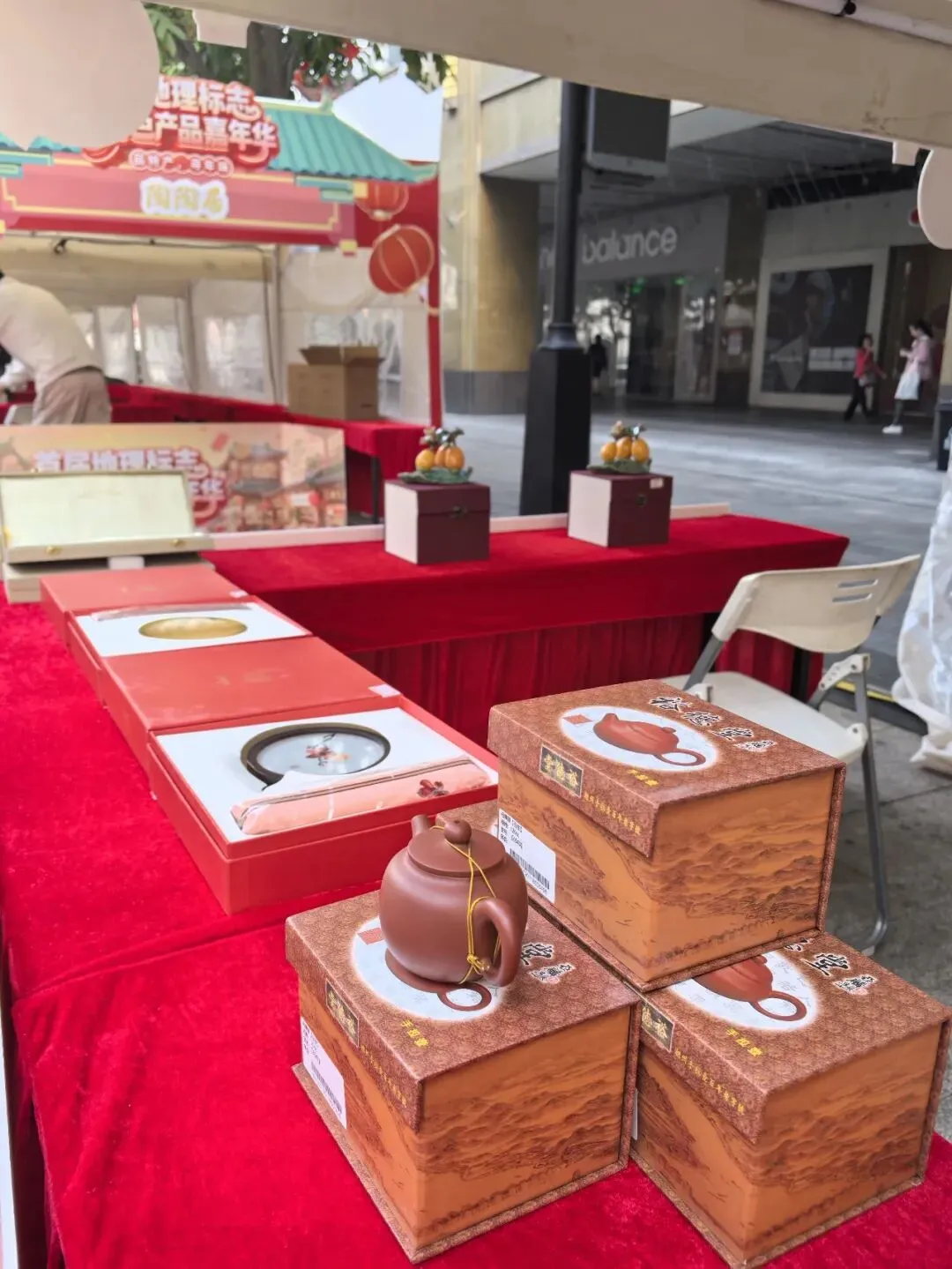 活动现场,25个特色展位沿街展开,形成一道亮丽的岭南风情线。凤凰单丛茶、化橘红、德庆贡柑等数十款地理标志产品集中亮相,展现了“粤字号”品牌的品质魅力;由我司精心遴选的广绣、广彩、端砚等工艺美术精品同步展出,吸引众多市民游客驻足欣赏、互动体验。传统工艺与地方风物的创新结合,不仅彰显了岭南文化的深厚底蕴,也让匠心技艺以更亲切的方式走进公众视野。