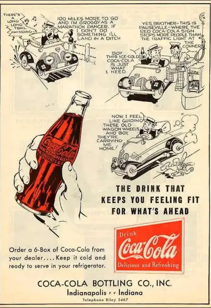 约翰・彭伯顿在南北战争中伤后染上了吗啡瘾。为了摆脱依赖,他转行成为药剂师,致力于研发一种无吗啡的止痛药和精神振奋剂。一位忙碌的店员误将苏打水(碳酸水)当作普通水加入了糖浆中,结果,这款本应是药用糖浆的液体,变成了一杯气泡丰富、口感清爽的饮料。