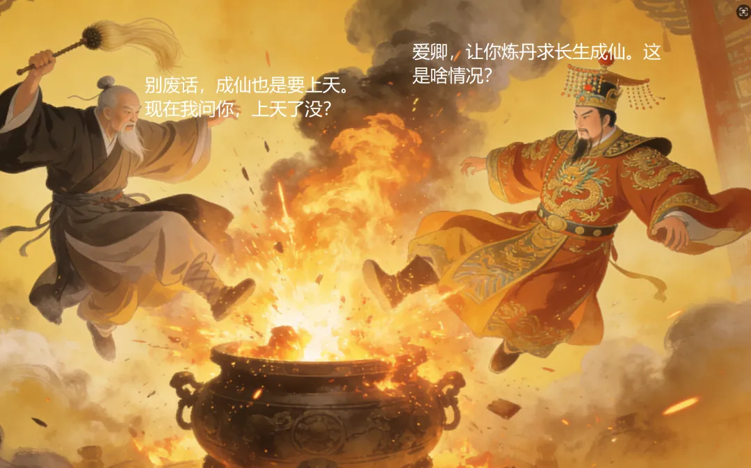 炼丹家追求 “长生不老药”,混合硝石、硫磺、木炭等原料加热后,混合物发生剧烈爆炸。同时这项发明也终结了冷兵器时代。