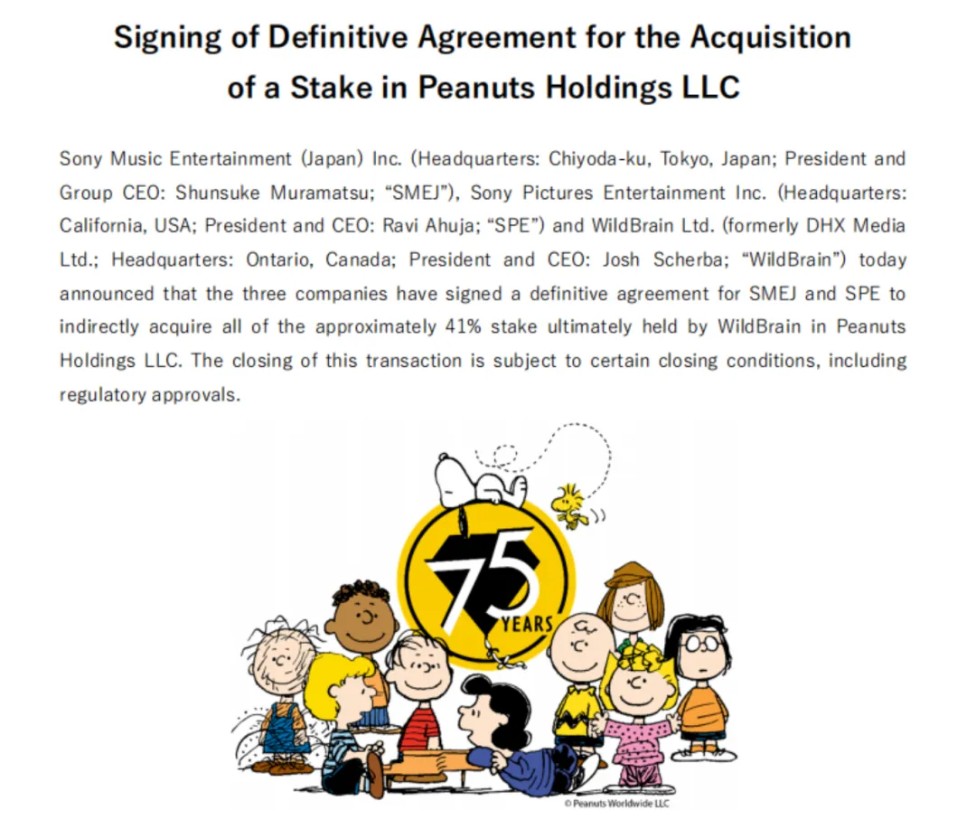 国际娱乐集团的动作同样迅猛,索尼堪称2025年的标杆玩家。年初,索尼斥资500亿日元成为角川公司最大股东;7月,战略入股万代南梦宫;12月,进一步控股全球顶级IP《花生漫画》,其布局逻辑清晰地指向了稀缺的顶级IP资产。