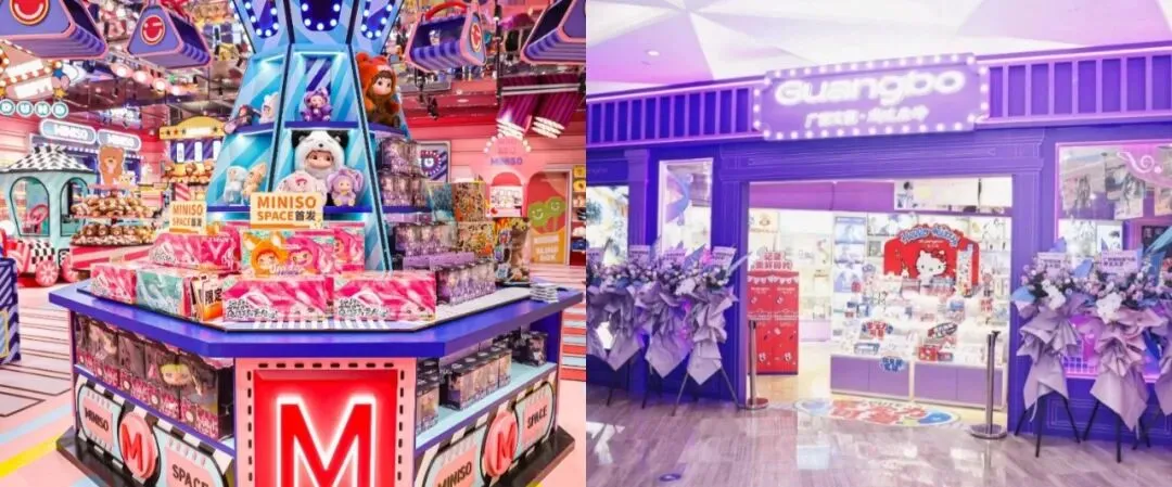 名创优品面向全球发布“IP天才少年计划”,签约16个潮玩艺术家IP,搭建自有IP矩阵,同时推进“腾笼换鸟”战略,对80%的既有门店进行升级改造,并在南京德基广场打造首家高端IP主题门店 MINISO SPACE。广博股份则在2025年半年报中将IP衍生品业务列为核心战略,一方面高频上新IP周边产品,另一方面加速线下渠道布局,于11-12月在上海静安大悦城接连开出首家文创潮玩集合店与主题店,完成转型关键落子。