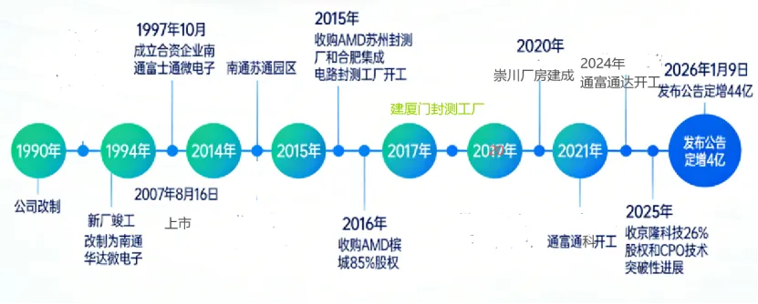 长电科技(600584)成立于1972年,是全球领先的集成电路制造与技术服务提供商,2003年上交所上市。其通过多种先进封装技术,提供芯片成品制造一站式服务,涵盖设计到直运等环节。业务上,在中国、韩国、新加坡设六大生产基地和两大研发中心,全球有20多个业务机构,生产基地均通过IATF16949认证。技术上,掌握Fan-out等先进封装技术,Chiplet技术为高端AI芯片提供高集成度方案,XDFOI®工艺稳定量产,还设汽车电子事业中心服务车规芯片封测。市场方面,产品应用广泛,2025年先进封装业务营收占比升至30%,海外营收超50%,2025年前三季度营收286.7亿元、同比增14.78%,净利润9.5亿元。发展历程中,2014年合资成立中芯长电,2015年收购星科金朋,2024年控股股东变更并与Allegro MicroSystems战略合作 。