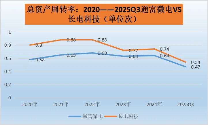 资产运营效率方面在各年度中,长电科技的总资产周转率整体高于通富微电。这意味着长电科技在相同规模的资产下,能够创造更多的销售收入,资产利用效率更高。长电科技可能凭借其成熟的生产运营模式、优化的供应链管理以及有效的市场策略,使资产得到了更充分的利用。