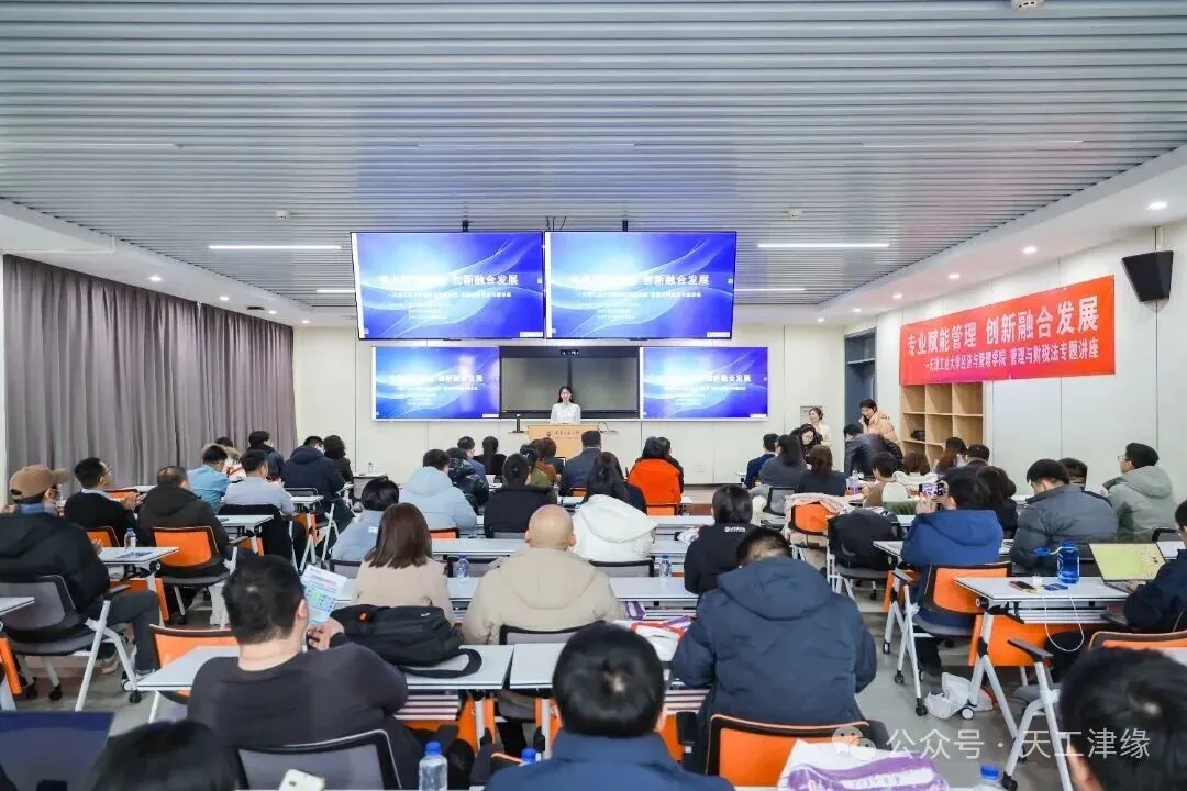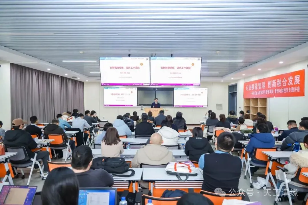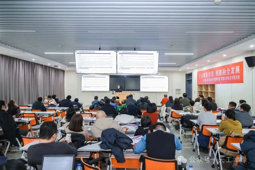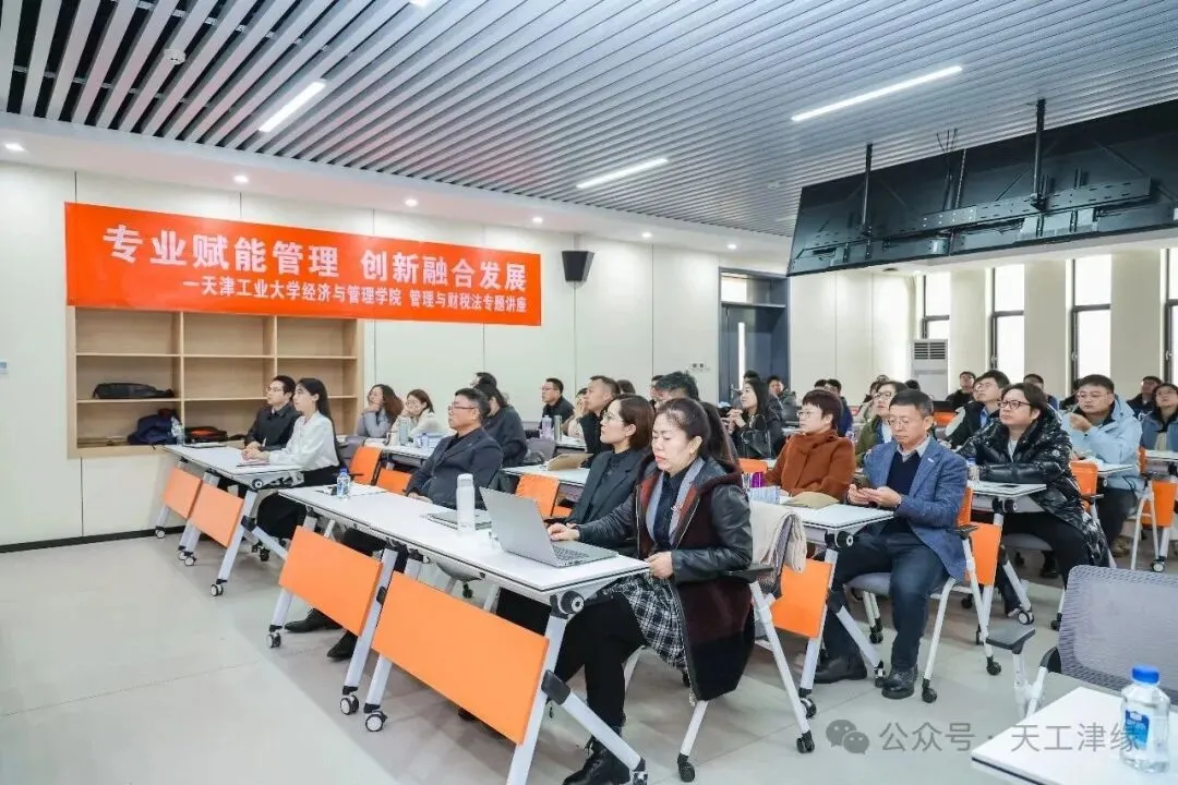1月18日下午,由天津校友会与经济与管理学院、MBA校友会联合主办的管理与财税法专题讲座在经济与管理学院308教室举行,来自各行各业的百余名天工校友、企业负责人及中高层管理者齐聚一堂,活动现场座无虚席、氛围热烈。学院及校友会相关领导高度重视本次讲座活动,经济与管理学院常务副院长齐庆祝,MBA校友会会长崔建章、秘书长刘玮,天津校友会会长盖文卓、执行会长宣向斌、秘书长张博航、执行秘书长饶峥出席活动。