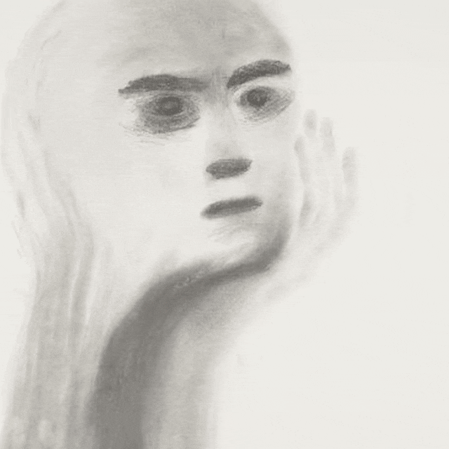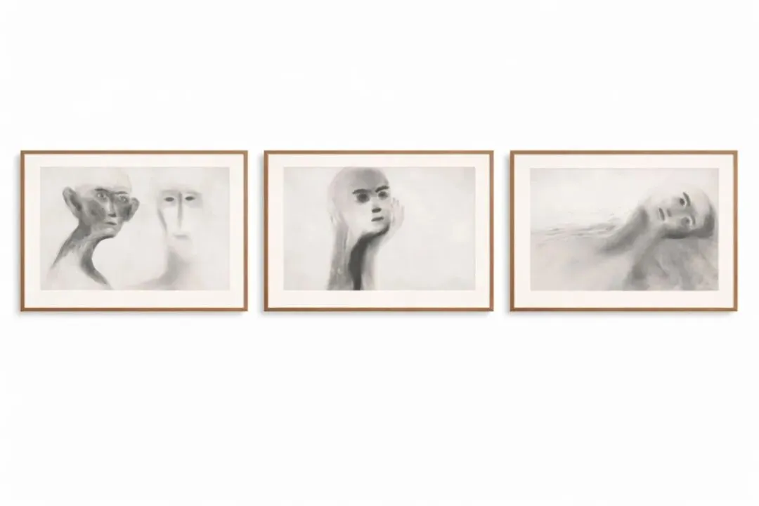 米利亚姆·卡恩(Miriam Cahn),《was mich anschaut(凝视着我的东西)》,1994年。石墨与铅笔于纸本,三件,每件43×61厘米(已装框)。©米利亚姆·卡恩。图片由艺术家及麦习沃尔夫画廊提供。
