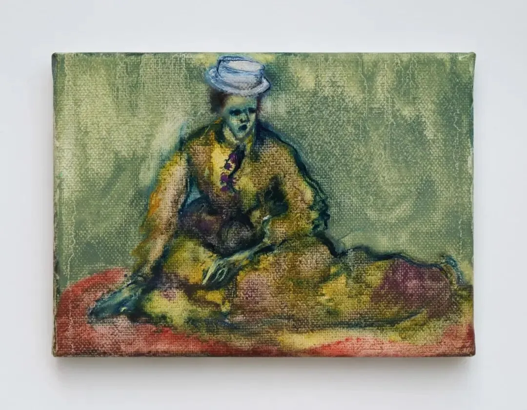 阿尔玛·费尔汉德勒(Alma Feldhandler),《Victoria and Edward(维多利亚和爱德华)》,2025 年。油彩与纸于亚麻画布,双联画,每件 18 × 14 厘米。© 阿尔玛·费尔德汉德勒。图片由艺术家及麦习沃尔夫画廊提供。