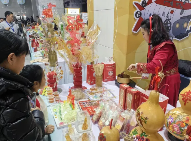 “冬日非遗美食街”集中展示辽宁冬季特色非遗美食,汇聚海城小码头干豆腐制作技艺、锦州糖画、铁岭水漏榛子技艺、建平制糖技艺等非遗美食项目,尽显辽宁饮食文化的厚重底蕴。观众可免费品尝各色非遗美食,感受辽宁味道的独特魅力,也可集中采购,将美味打包带回家。