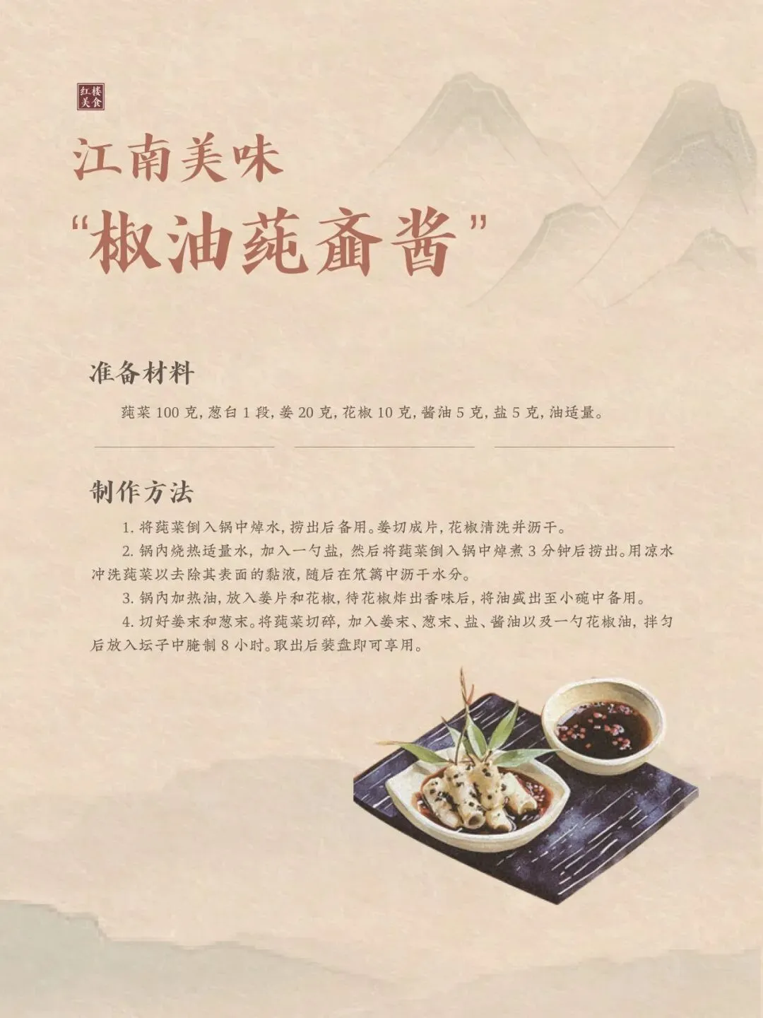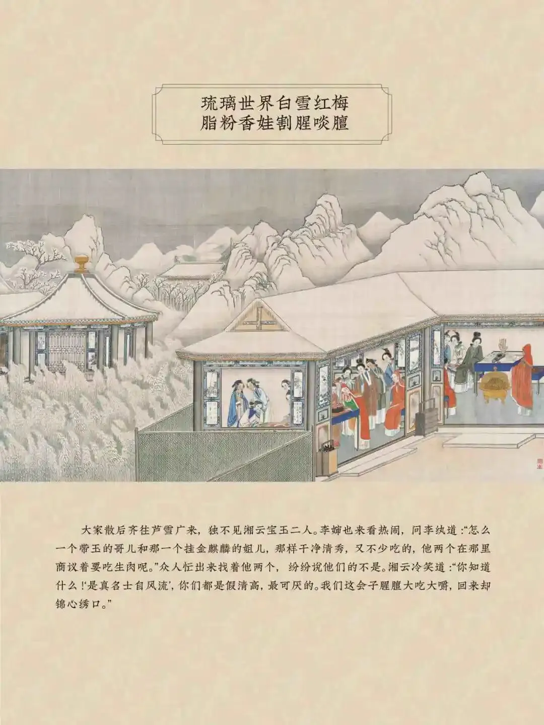 本次展览以“红楼飨宴”为核心主题,以文学鉴赏为核心,巧妙地将文学与美食相结合,致力于为观众提供一场独具特色的文化盛宴。步入展厅,首先映入眼帘的是第一篇章“玉石琼浆映群芳”,在这里,您将领略到《红楼梦》中人物与饮食文化的风采。在第二篇章“华筳席梦回时”中,将引领您穿越时空,体验《红楼梦》宴会中的名场面。最终,在第三篇章“珍馐百味谱红楼”中,您将一览经典美食的制作秘籍。