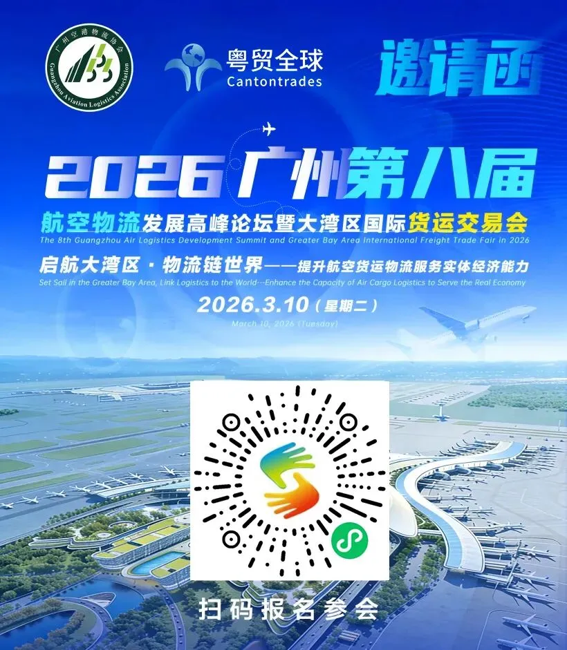 别慌!由粤贸全球鼎力支持的「2026 广州第八届航空物流发展高峰论坛暨大湾区国际货运交易会」,就是你抢占全年先机的关键开关战 ——3 月 10 日,广州空港硬核启幕,把行业顶流资源、实战干货、精准订单全送到你面前!