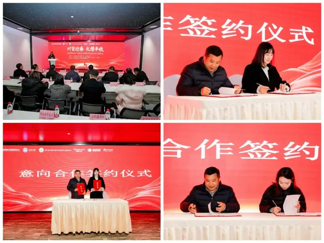 活动最后举行的意向签约仪式将现场推向高潮。在与会领导与嘉宾的共同见证下,3家生产企业与采购单位现场签署了采购意向协议,签约金额可观,实现了2026年四川特色农产品销售的“开门红”。这些签约不仅体现了市场对四川农产品的高度认可,也预示着“川货”在新春消费市场的强劲潜力。会后数据统计现场达成订单159个,洽谈后意向合作335人,活动只是一个起点,期待后期有更多的合作达成。