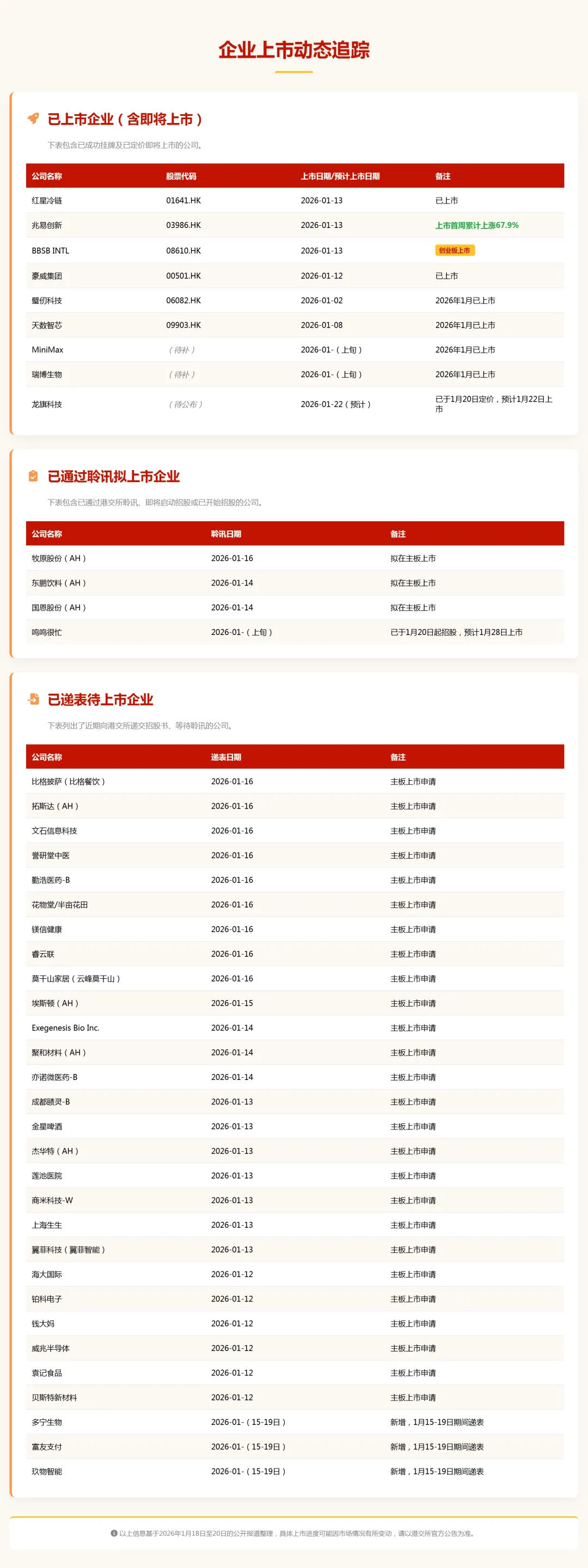 2026年1月赴港上市企业名单