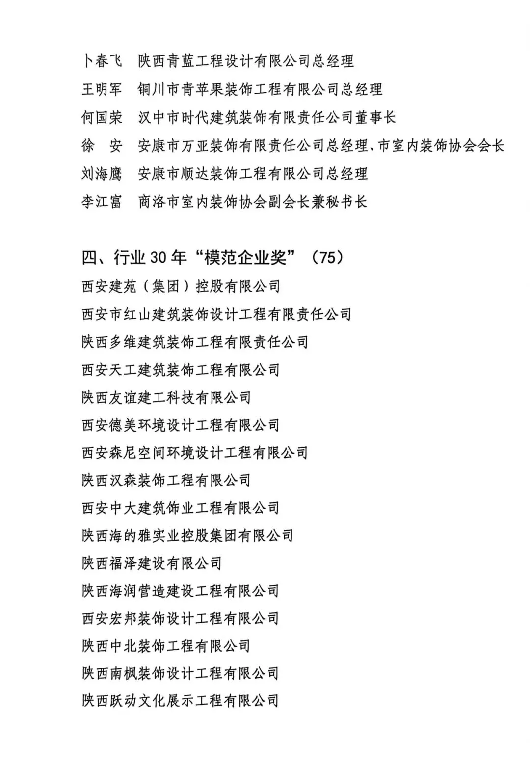 近日,在陕西省室内装饰协会成立 30 周年评选表彰活动中,我公司凭借深耕行业的专业积淀、赋能产业的突出贡献与责任担当,荣获 “行业三十年模范企业奖”,成为受表彰的模范企业之一。