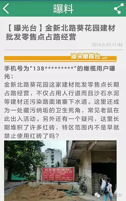 针对市民反映的问题,葵花社区居委会及时会同东墩工商所联合行动,责令经营者清理乱堆放的沙石、砖头,并由工商部门对其无证经营的违法行为进行处理,现该曝光点已还路于民。葵花社区居委会表示:接下来会继续加大监督巡查力度,坚决制止占道经营行为,杜绝出现回潮现象。