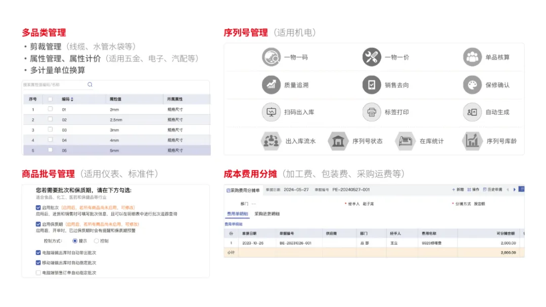 1.商品成本核算精细化,多品类多属性管理