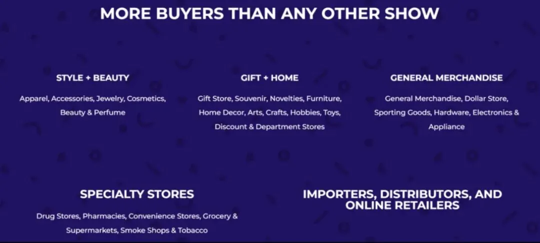 无论您主营日用百货商品、礼品饰品、时尚服装配饰、美妆个护、电子与智能产品,或其他轻消费类产品,ASD 都为您提供与全美主流采购网络高效对接的绝佳机会。