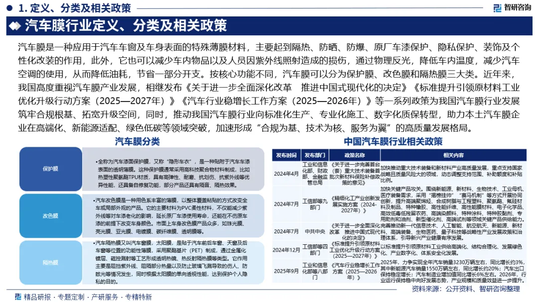 基于此,依托智研咨询旗下汽车膜行业研究团队深厚的市场洞察力,并结合多年调研数据与一线实战需求,智研咨询推出《2026-2032年中国汽车膜行业市场分析研究及发展趋向研判报告》。本报告立足汽车膜新视角,聚焦行业核心议题——变化趋势(怎么变)、用户需求(要什么)、投放选择(投向哪)、运营方法(如何投)及实践案例(看一看),期待携手行业伙伴,共谋行业发展新格局、新机遇,推动汽车膜行业发展。