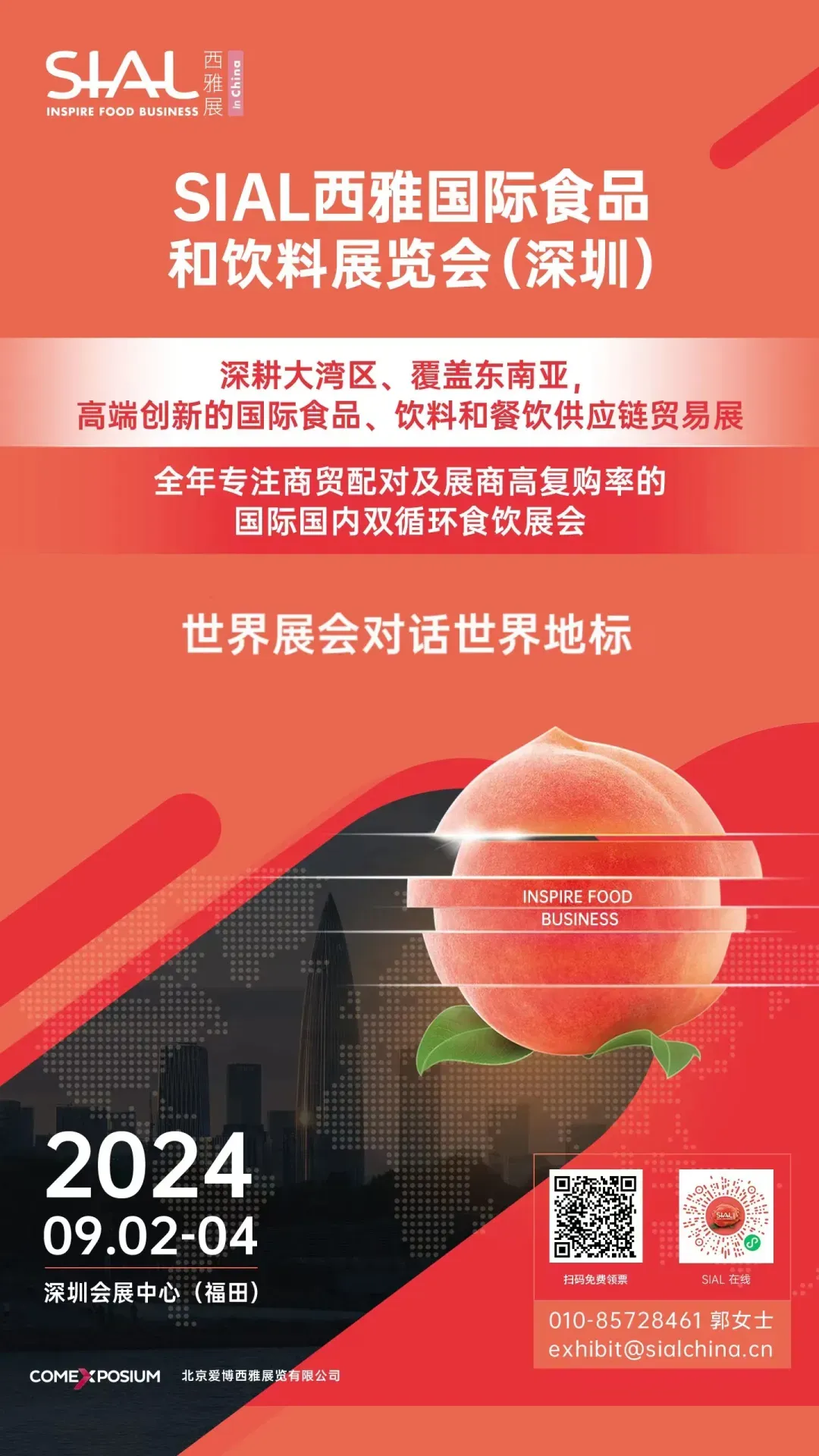 展会简介:由全球前五大、法国第一大展览机构法国高美艾博展览集团及北京爱博西雅展览有限公司共同主办的SIAL 西雅国际食品展(深圳),将于2024年9月2日-4日在深圳会展中心(福田)举行。届时,全球1,500+展商和超过67,000名专业人士将共聚粤港澳大湾区,共赴全球食品产业链的行业盛会。本届展会得到了全球43个国家和地区政府及专业机构、国内20余个省市地方政府和相关部门的大力支持。