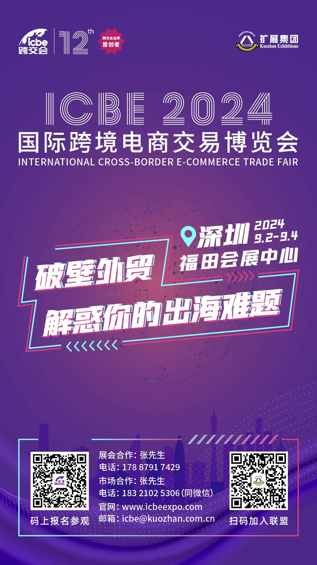展会简介:ICBE2024深圳跨境电商交易博览会(简称“ICBE跨交会”)由广东省电子商务协会以及扩展集团主办,深圳扩展展览服务有限公司、海圈网共同承办。ICBE跨交会致力于为供应链企业及外贸相关产业打造一个具有全球视野的专业平台,涵盖选品、合作、交流、对接和学习等多个方面。ICBE跨交会倡导“跨界融合、多维创新”,通过布局AI大数据、直播、产业带协作和供应链体系,为跨境电商从业者开辟降本增效大门。同时,ICBE跨交会特别关注本土文化赋能产品营销,旨在构建更加多样化的对接服务体系,助力企业精准把握全球消费趋势,推动中国制造和品牌深入国际市场,实现品牌出海战略。