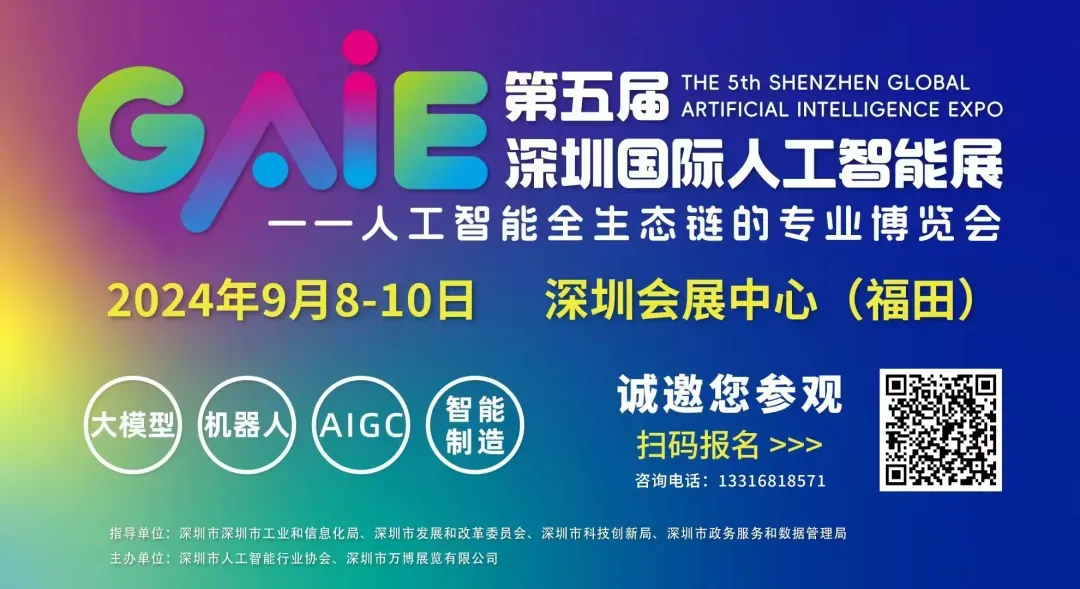 展会简介:第五届深圳国际人工智能展(GAIE)将于2024年9月8日至10日在深圳会展中心(福田)盛大举行。作为粤港澳大湾区人工智能领域的专业盛会,GAIE不仅展示了人工智能领域的最新成果和前沿技术,更是一个促进行业交流、推动创新发展的重要平台。自2020年创办以来已成功举办四届, 旨在分享海内外人工智能创新成果,搭建国际化的人工智能全行业展示、技术交流、学术探讨、成果交易、品牌推广、人才建设等多要素深入融合的平台,打造新一代人工智能技术创新和应用落地风向标,至今累计吸引参展企业800+;展示科技成果近万件;共举办高层次论坛120场+;320家海内外媒体参与展会报道,触达专业观众200000+,撬动产业合作超400亿元。