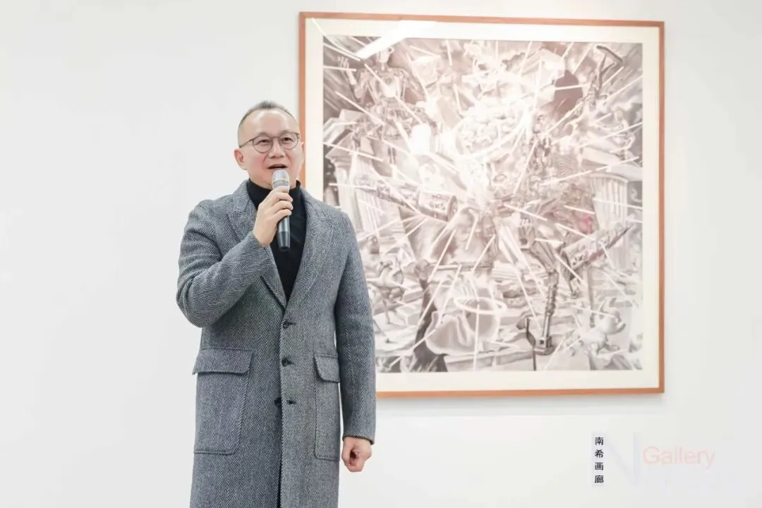 尹安泰先生表达了对艺术家和南希画廊的真挚祝贺,并介绍了艺河湾艺术区的成长历程及发展规划。艺河湾艺术区从2018年底开始发展青年艺术家入驻计划,陆续开设多个艺术家工作室,并筹建了泰美术馆。其未来目标是开拓艺术拍卖、金融等多元艺术方向,将艺河湾艺术区打造为长三角地区代表性的当代艺术名片。