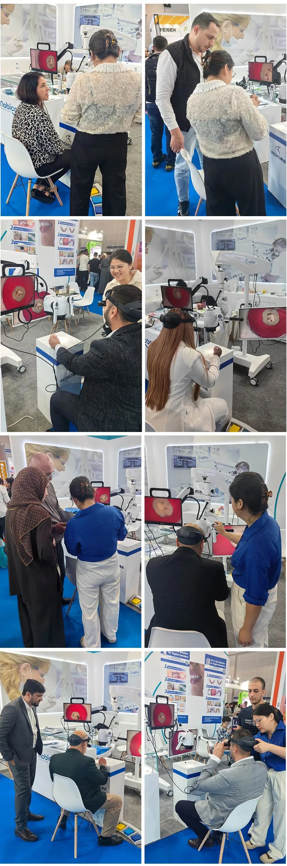 展会期间,鹰目医疗展位始终客流涌动、备受瞩目,数字裸眼显微镜凭借差异化技术优势成为全场焦点,吸引了阿联酋、沙特、卡塔尔等国的医院医生、牙科诊所院长、资深采购商及行业专家驻足咨询、实操体验,现场互动热度持续攀升。