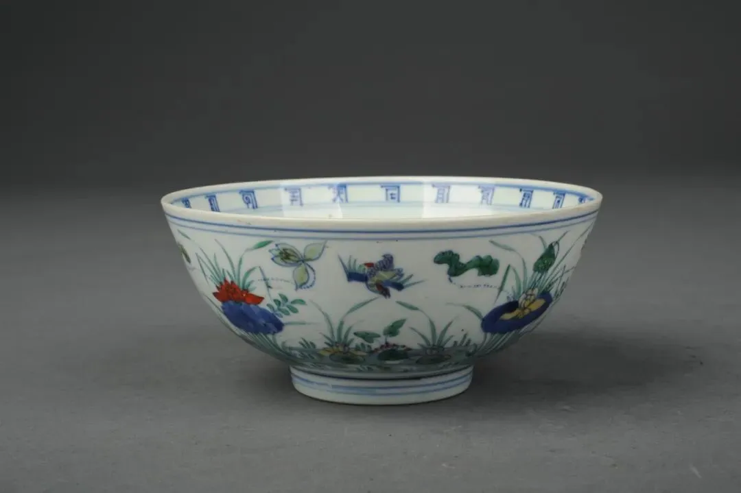 清康熙仿明斗彩荷花鸳鸯碗 三级文物
