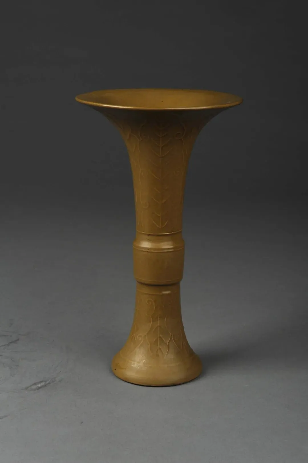 清鳝鱼黄釉芭蕉叶纹花觚
