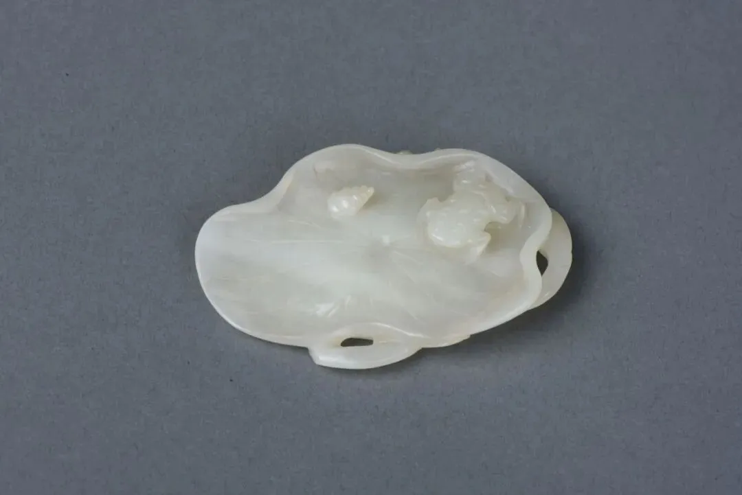清雕荷叶青蛙盘