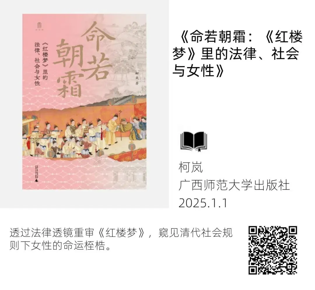 柯岚教授以法律与社会学视角剖解《红楼梦》,揭示清代法律如何塑造人物的悲剧命运。从财产继承到婚姻制度,本书让经典焕发新思,被赞为“法律与文学交叉研究的典范”,为读者打开一扇理解古典社会结构与女性生存困境的窗口。