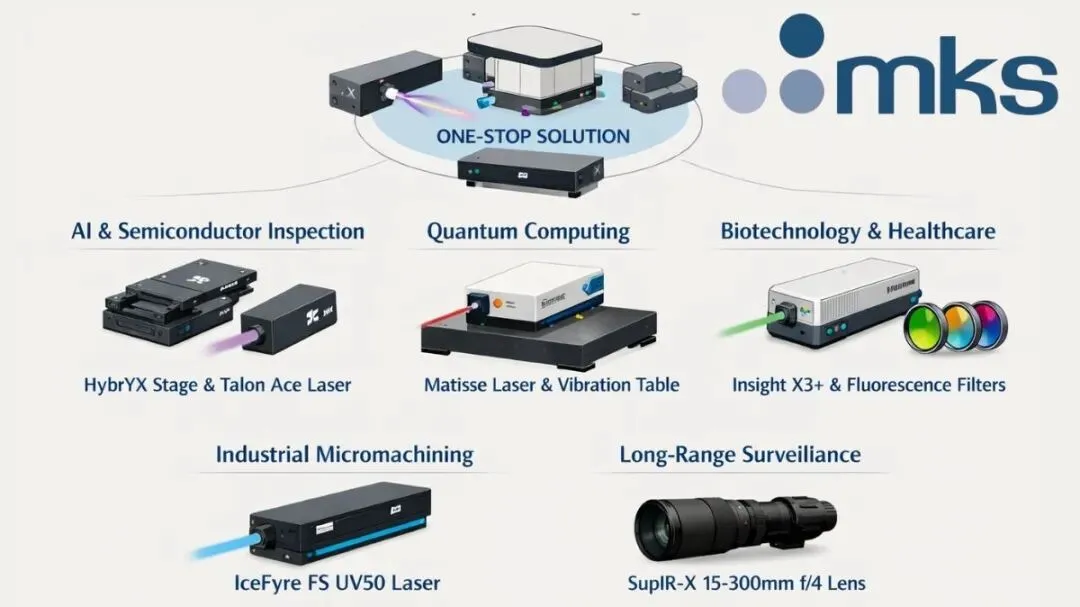 为支撑相关研究,Newport非磁性气浮隔振台提供卓越的环境干扰隔离能力,这对维持敏感量子实验的稳定性及最小化磁干扰至关重要。MKS同时提供如Spectra-Physics Talon Ace激光器及精密运动系统等关键组件,为构建与控制量子系统奠定基础。