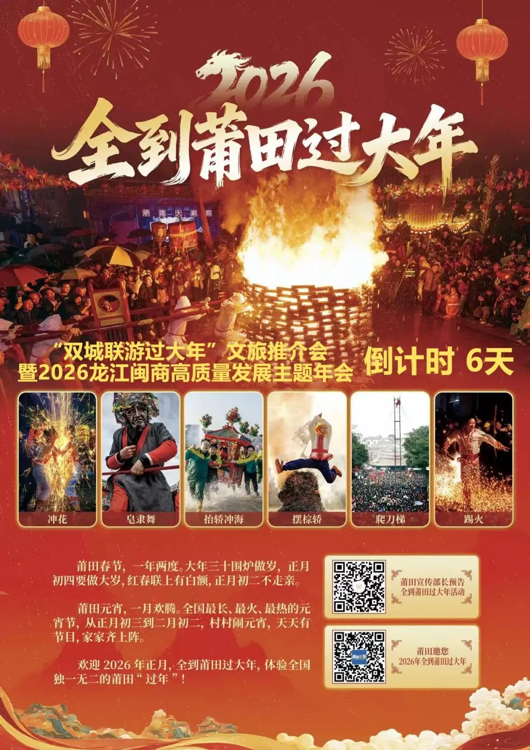 1月28日下午,黑龙江省福建总商会将携手莆田市委市政府共同举行“双城联游过大年”文旅推介会暨2026龙江闽商高质量发展主题年会。