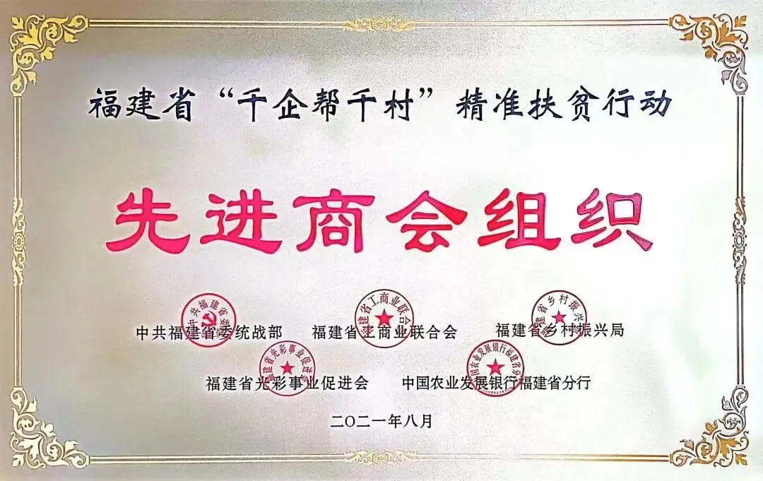 近年来,我们备受全国工商联的肯定和龙闽两省的赞誉,连续四届获评“全国四好商会”,获得“全国工商联抗击新冠疫情先进商会组织”“全国工商联百家商会党建示范单位”“黑龙江省5A级社会团体”“福建省千企帮千村精准扶贫先进商会组织”“黑龙江省工商联精准扶贫先进单位”等荣誉。