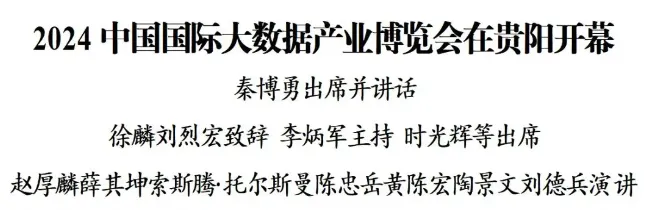 2024中国国际大数据产业博览会8月28日在贵州省贵阳市开幕。全国政协副主席、民建中央常务副主席秦博勇出席开幕式并讲话。贵州省委书记、省人大常委会主任徐麟,国家数据局党组书记、局长刘烈宏致辞。贵州省委副书记、省长李炳军主持。国际电信联盟前秘书长、中国通信学会名誉理事长赵厚麟,国家最高科学技术奖获得者、中国科学院院士、南方科技大学校长薛其坤,国际数据空间协会总干事索斯腾·托尔斯曼,中国联通集团董事长陈忠岳,思爱普全球执行副总裁、大中华区总裁黄陈宏,华为董事、质量流程IT总裁陶景文,北京智谱华章公司董事长刘德兵发表演讲。贵州省委副书记、省委政法委书记时光辉,国家有关部委领导,省委常委,省人大常委会、省政府、省政协有关负责同志出席开幕式。8月28日,2024中国国际大数据产业博览会在贵州省贵阳市开幕。