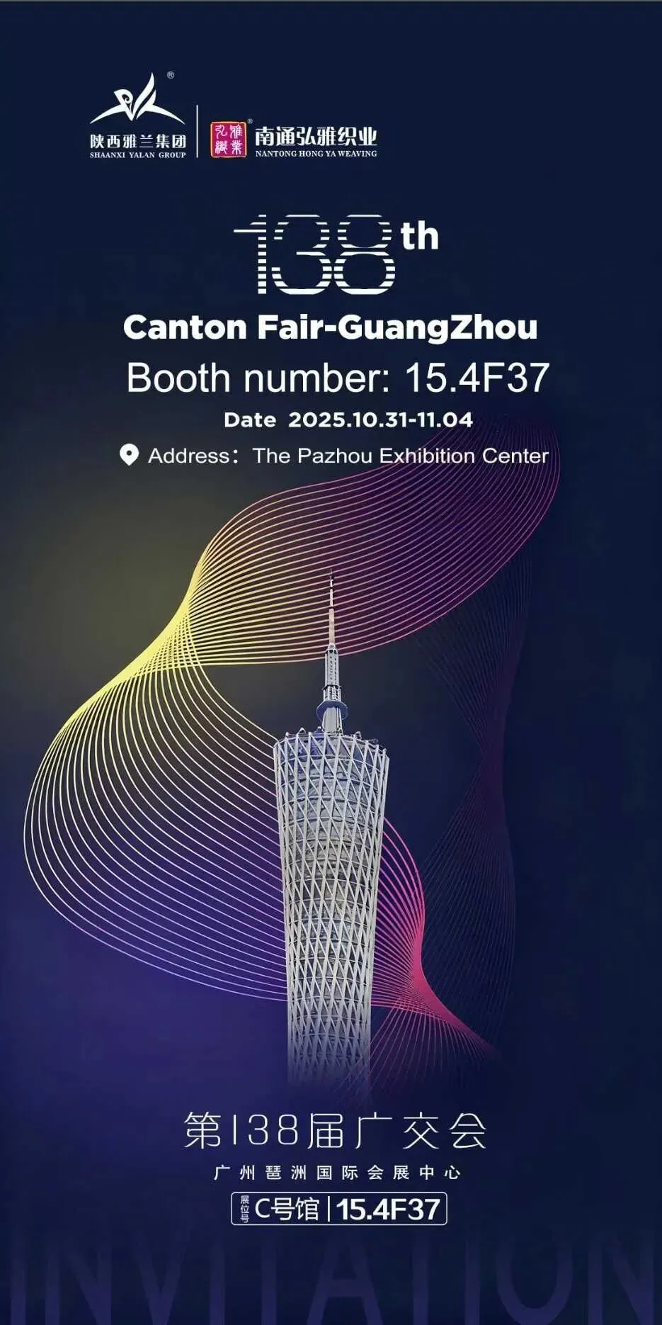 陕西雅兰纺织集团已整装待发,携2025“睡科技”产品亮相广交会,诚邀全球伙伴莅临14.1B25-26、15.4F37展位,共赴一场关于纺织科技与品质生活的盛宴。