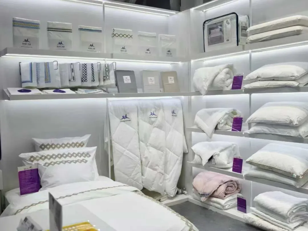 此次参展,陕西雅兰寝饰重点推出了绿色低碳系列产品,带来了最新升级的面料、芯类及巾类等全品类矩阵,以实际行动践行环保责任,为行业绿色转型树立标杆。
